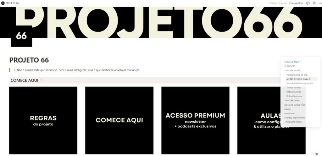 Ele vai afinar ainda mais seus hábitos e te ajudar a identificar onde você pode ser ainda mais eficiente e focado. Pessoalmente, é o que aconteceu comigo — eu já tinha uma base, mas o PROJETO66 me levou a outro nível, e pode fazer o mesmo por você.